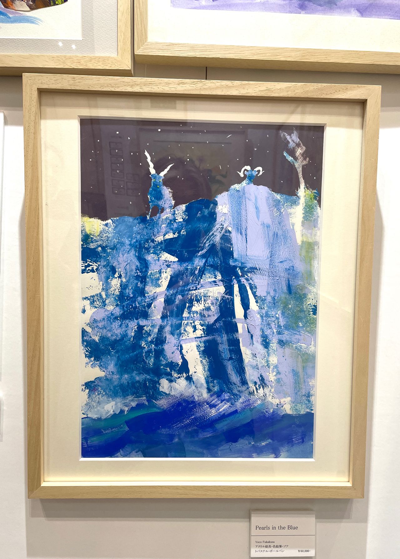 深草さんの作品は自然や生き物をモチーフにして、アクリル絵の具をローラーで描かれる技法で、そのテクスチャーと筆で描く表現とを混合させ、ボールペンや色鉛筆・パステルなども併せて描かれます。